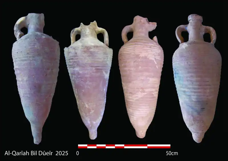 O chefe da missão arqueológica, Walid El-Sayed, explicou que a equipe encontrou uma variedade de artefatos arqueológicos no local, incluindo ânforas usadas para armazenamento, algumas das quais apresentam inscrições que podem ser letras, números ou nomes gravados em seus ombros. Também foram descobertos vários óstracos com inscrições em língua copta, além de utensílios de uso cotidiano, fragmentos de pedra que representam partes de elementos arquitetônicos e peças de placas de calcário gravadas com inscrições em escrita copta.